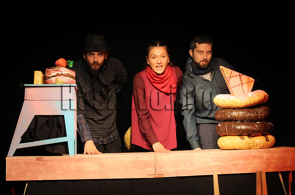 Драматизацията и режисурата е дело на Ева Кьосовска, сценографията на Крум Крумов, музиката е на Георги Георгиев от „Остава“. Участват актьорите Стефани Раманска, Петър Влайков и Димитър Димитров.