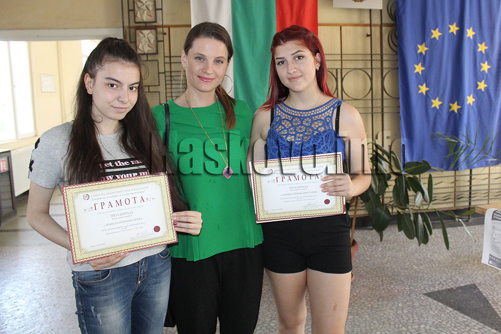 Двете са работили в екип и успешно са изнесли доклад на тема „Човешкият капитал и благоденствието на България“. В него момичетата от специалност „Оперативно счетоводство“ са изследвали как училището и образованието влияят на човешкия капитал, което е впечатлило журито. Техен ръководител е преподавателят Миряна Георгиева.