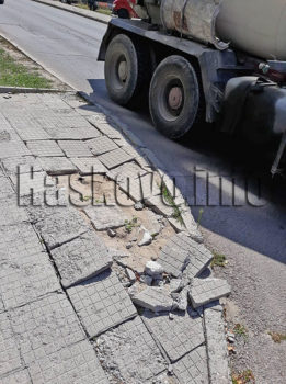 Хората предполага, че това е направено от камиони, които са се качвали на тротоара. Те настояват общината да ремонтира въпросния участък.
