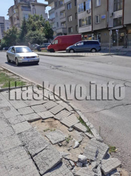 За разбит тротоар на хасковската улица „Дунав“ сигнализираха читатели на Haskovo.info, които изпратиха и снимки.