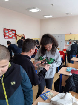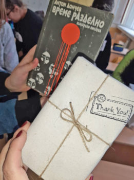 Днес учениците станаха притежатели на своите книги. Вълнението при отварянето на пакетите беше голямо. Книгите, избрани да бъдат продадени „на сляпо“, са скрити в опаковъчна хартия. Учениците са разбрали за инициативата от публикация в една от социалните мрежи и сами са решили да се включат.
