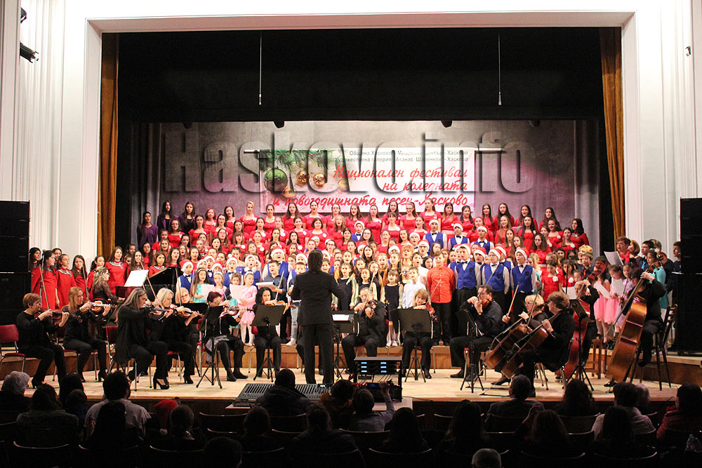 300 хористи и камерният оркестър с диригент Цанислав Петков изпълниха тази вечер три коледни песни на сцената на хасковското читалище „Заря“.