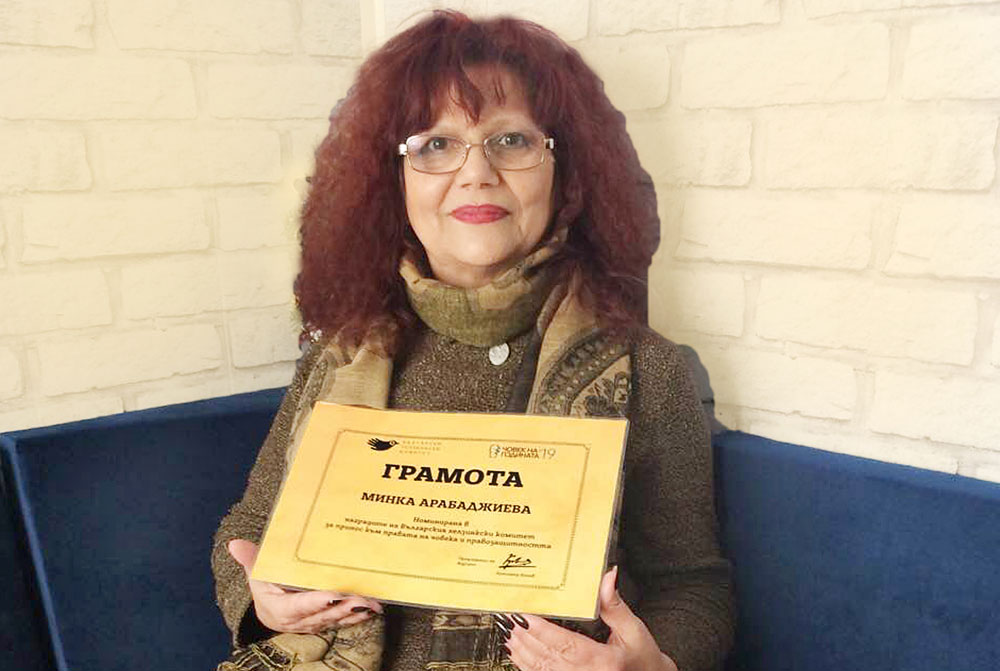 Председателят на хасковското сдружение „Българска Асоциация на хора с онкологични и други заболявания „Живот““ Минка Арабаджиева получи грамота от Българския хелзинкски комитет на церемония в столицата. Тя бе номинирана за годишните награди за нейния принос за правата на човека и правозащитността.