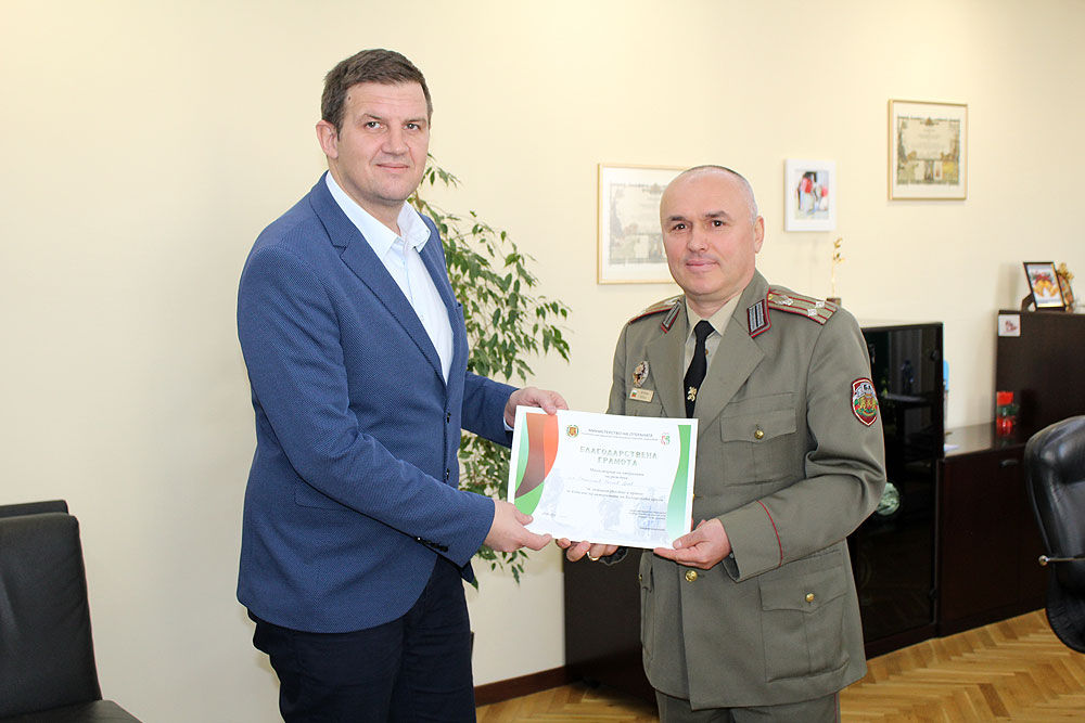 Днес началникът на Военно окръжие Хасково подп. Петър Петков връчи грамотата на кмета и предаде личната благодарност на министъра на отбраната.