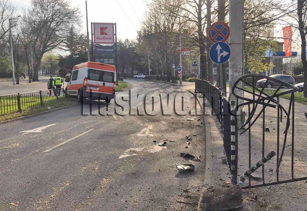 Линейка се удари в ограда на метри от болницата в Хасково