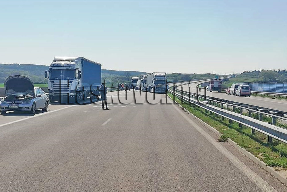Около 8:13 часа в съседство е станала голяма верижна катастрофа с участието на два камиона, 6 леки автомобила и микробус. При това произшествие са ранени 5 човека, четирима са откарани в хасковската болница, като двама са със средни телесни повреди – счупени ръце, крака и избити зъби, съобщиха от прокуратурата. Единият от пострадалите е албанец, а другите са българи, сред които пожарникар, който е отивал на работа с личния си автомобил. Магистралата в района е затворена до разчистването на ударените коли и камиони.
