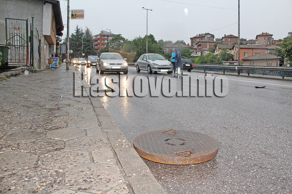 Haskovo.info припомня, че при бурята след обяд бяха наводнени ниските части на булеварди. Водата отнесе капак на шахта на булевард „Освобождение“, която удари и повреди лек автомобил.