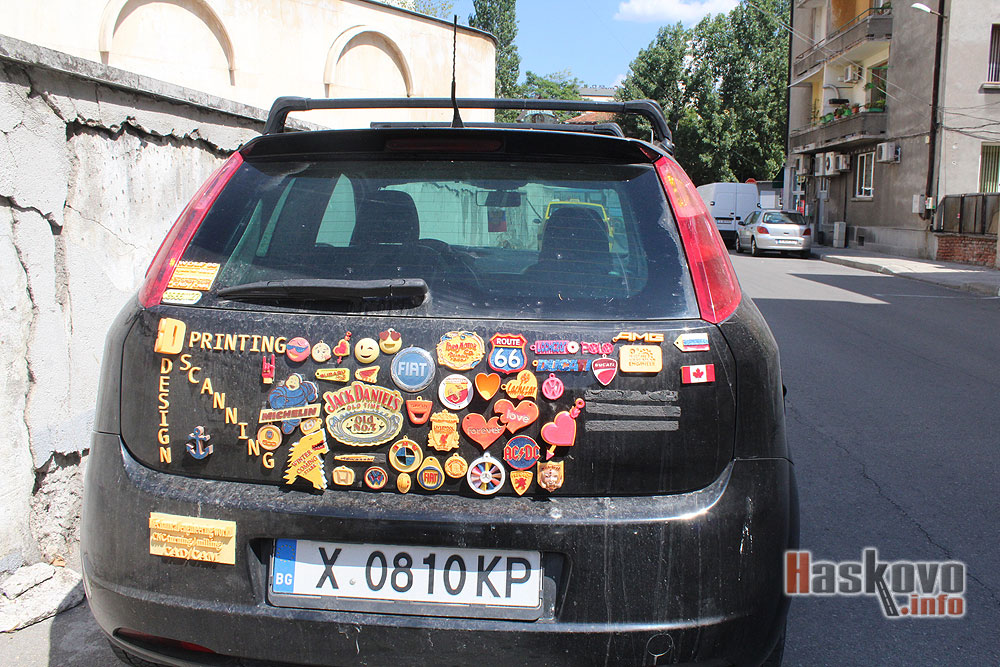 Задницата на хасковска кола се е превърнала във витрина за всевъзможни магнити.