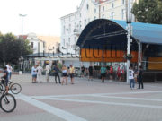 Там се провежда протест под наслов „Не на полицейския произвол“. Недоволството е срещу действията на полицията снощи при разчистването на палатковия лагер на моста над река Марица. Хора се оплакали, че били дърпани и влачени от полицията.