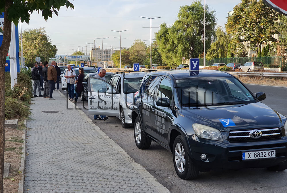 Автоинструктори от Хасково и региона потеглиха тази сутрин за националния протест на бранша в столицата. Те се събраха на изхода на града, където изчакаха колегите си от Кърджали и заедно тръгнаха към София с клаксони и знамена.