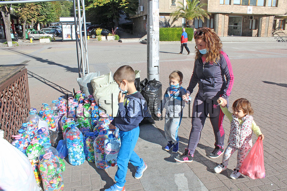 Дарители от сутринта носят хиляди пластмасови капачки пред сцената на площад „Свобода“. Акцията ще продължи до 14 часа. Събраните PVC капачки ще бъдат натоварени и извозени от доброволци към пункта за рециклиране в село Войводово.