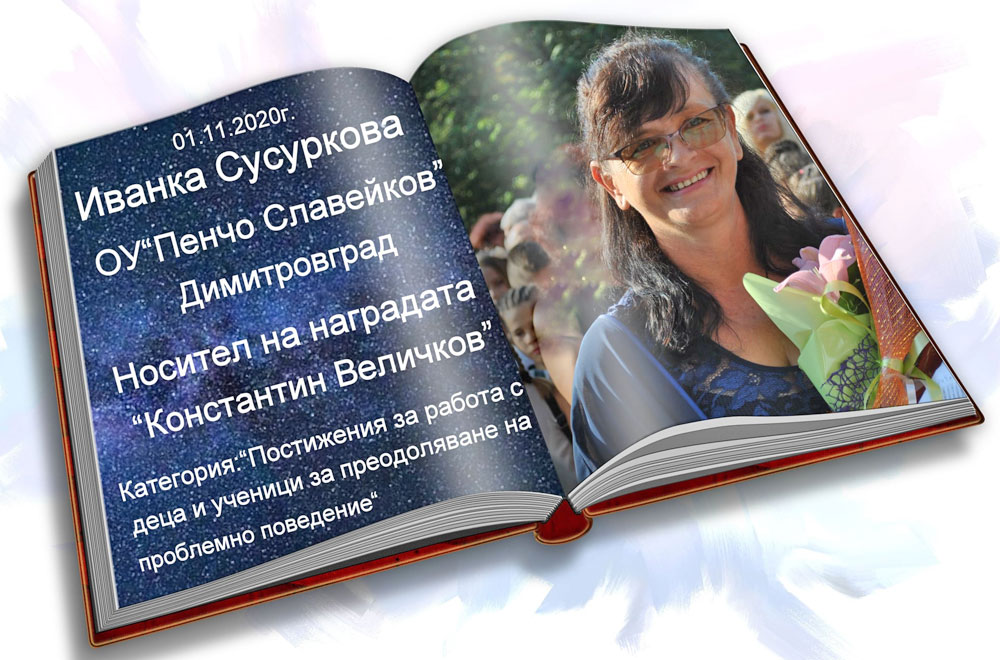 Преподавателят в начален етап в ОУ „Пенчо Славейков“ Иванка Сусуркова е носител на наградата „Константин Величков“, похвалиха се от димитровградското училище.