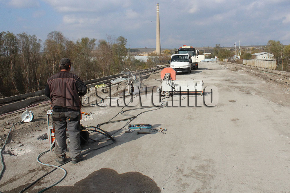 Деветте стари стоманобетонни греди на моста над река Марица в Димитровград вече се режат по специална технология.