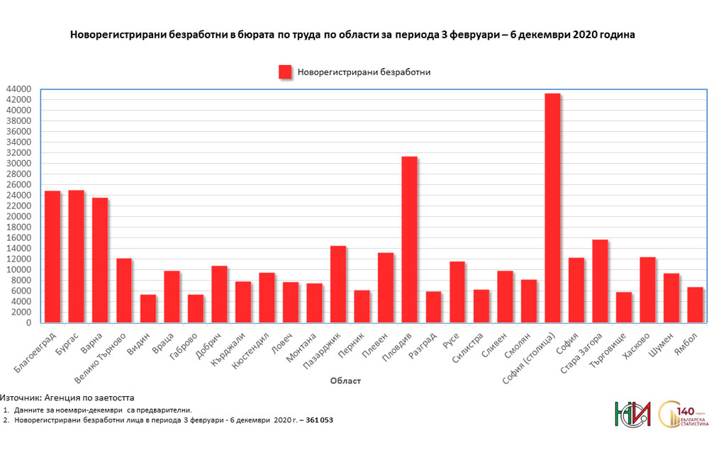 12 000 души са се регистрирали в бюрата по труда в Хасковска област за периода 3 февруари – 6 декември. Почти наполовина са постъпилите на работа.