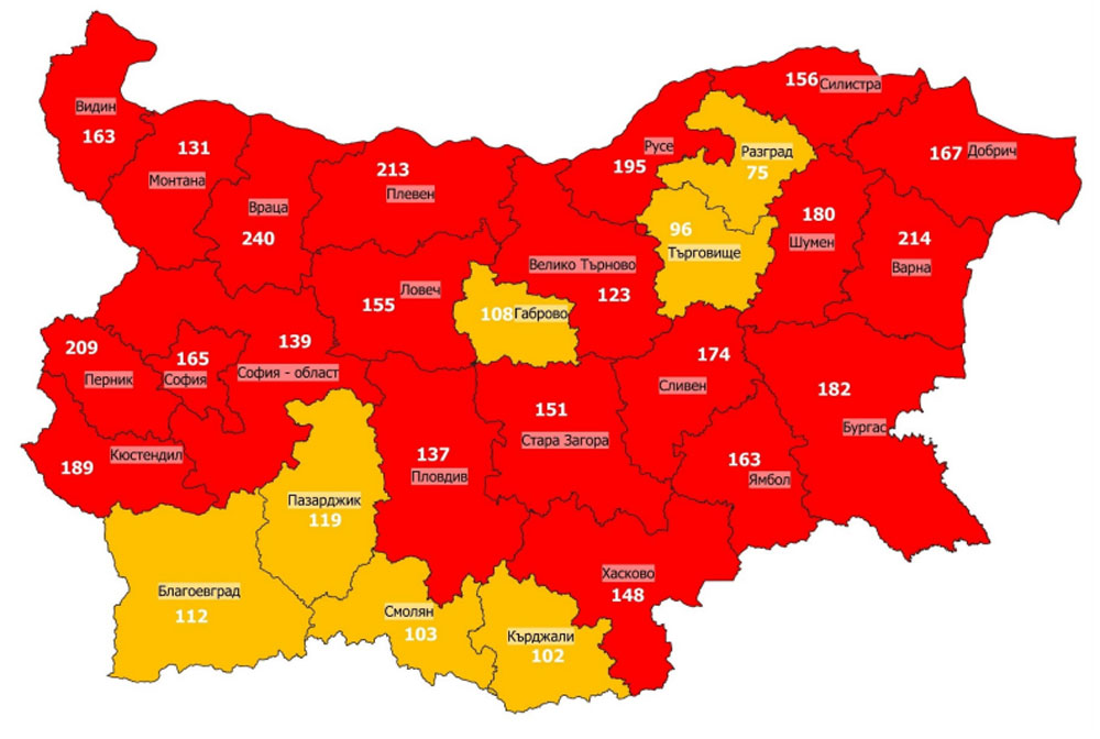 Все повече региони вече излизат от червената зона, където обаче остава Хасковско.