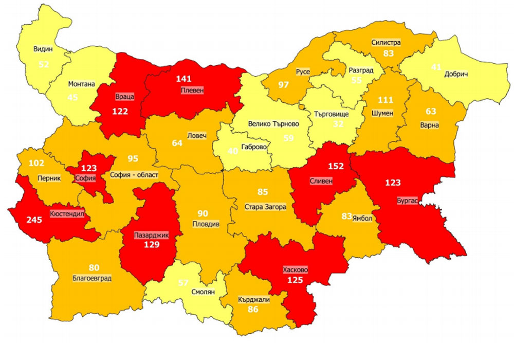 Общо потвърдените случаи на инфекцията в областта от началото на пандемията са 4 656. Хоспитализираните с потвърден PCR тест, въведени в Единната информационна система, са 112. На домашно лечение са 779 души, починали са 297, а оздравелите са 3 468.