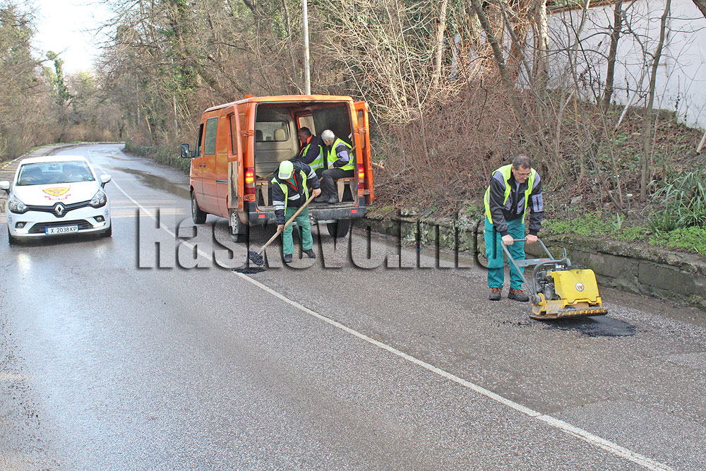 Опасни дупки по хасковската улица „Панорама“ бяха изкърпени днес със студена асфалтова смес от „Екопрогрес“.