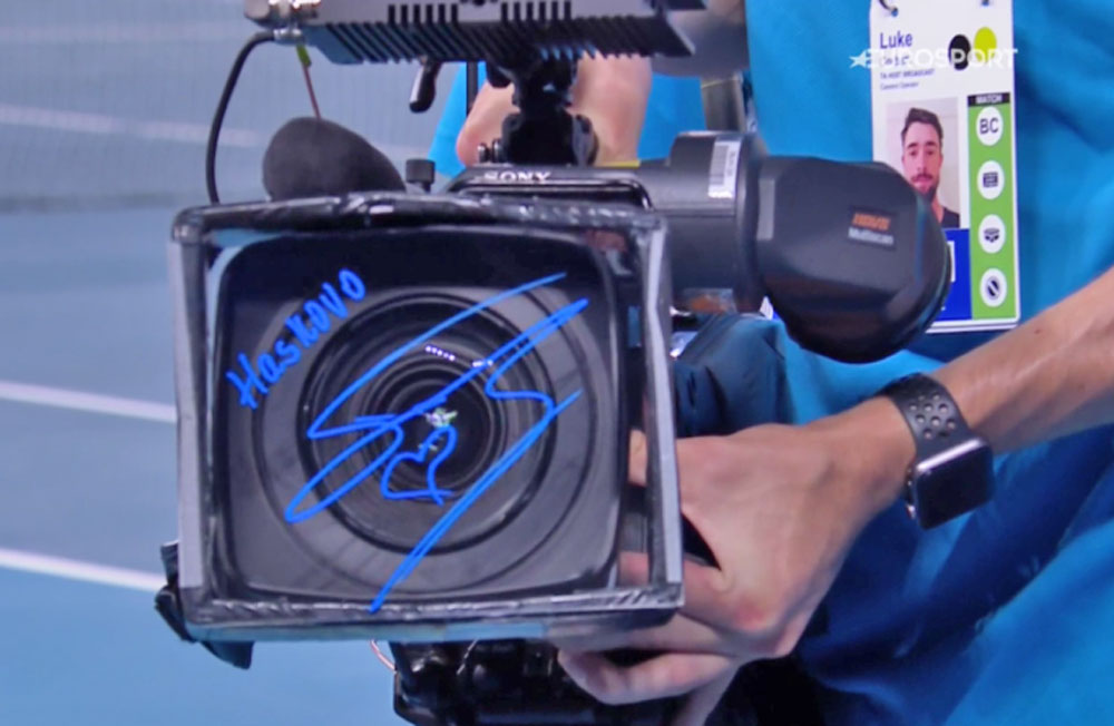 Григор Димитров посвети победата си над Алекс Болт на родния град Хасково. Ракета №1 на България направи това, написвайки Хасково и сърце към него на камерата, която традиционно подписват победителите на големите кортове в Мелбърн.