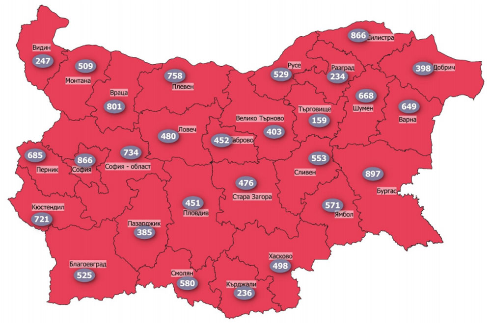 Потвърдените случаи на заразата в региона от началото на пандемията са 7 369. Хоспитализираните с потвърден PCR тест, въведени в Единната информационна система, са 293. На домашно лечение са 1 660 души, починали са 431, а оздравелите са 4 985.