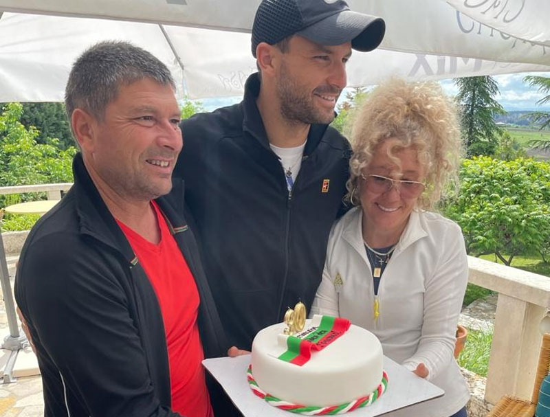 Торта в бяло, зелено и червено получи за своя 30-ти рожден ден тенисистът Григор Димитров. Той празнува със семейството си и любимата Лолита Османова.
