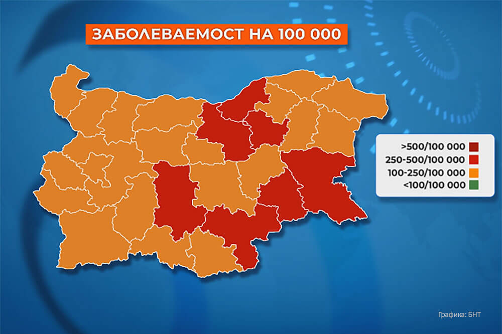 Хасковска област от днес е в червената зона по заболяемост от COVID-19. Към момента заразени са 263-ма на всеки 100 000 души.