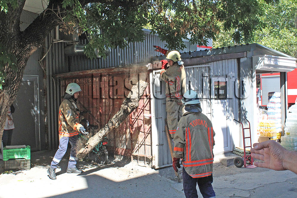 Тежкият клон беше свален от покрива на павилиона от пожарникарите. Собственикът на павилион се опасява да не падне цялото дърво, като се очаква „Екопрогрес“ да го обезопаси.