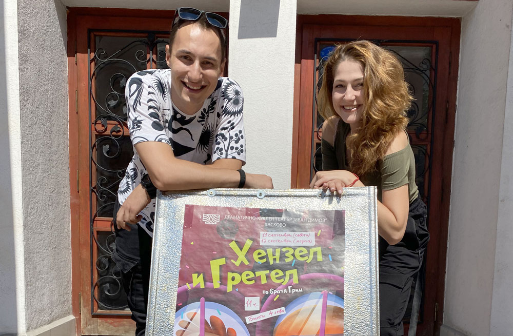 Стефана и Мартин се дипломираха тази пролет в НАТФИЗ „Кръстьо Сарафов“, специалност „Актьорско майсторство за куклен театър“ в класа на проф. Боньо Лунгов. Колегата им от академията Нелина Михайлова също ще бъде част от актьорския състав на хасковския театър. Очаква се следващият детски проект – „Аладин и вълшебната лампа“, постановка на Лео Капон, където тримата ще играят заедно.