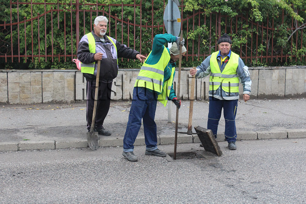 Чистят запушените шахти след дъжда в Хасково