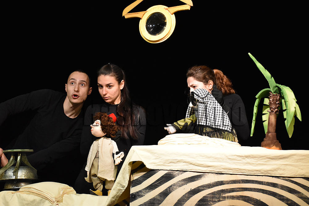 Младите актьори на хасковския театър „Иван Димов“ Мартин Милчев, Стефана Дункова и Нелина Михайлова дебютират заедно в премиерата на спектакъла за деца „Аладин“.