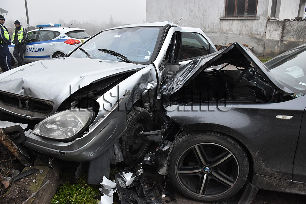 БМВ-то се е движило по главния път на селото, а Ситроенът е излязъл от пресечка и е последвал сблъсък, при който двете коли са се ударили в ограда на къща. Жена и трима мъже са откарани в Спешно отделение на МБАЛ – Хасково. Водачите не са употребили алкохол.