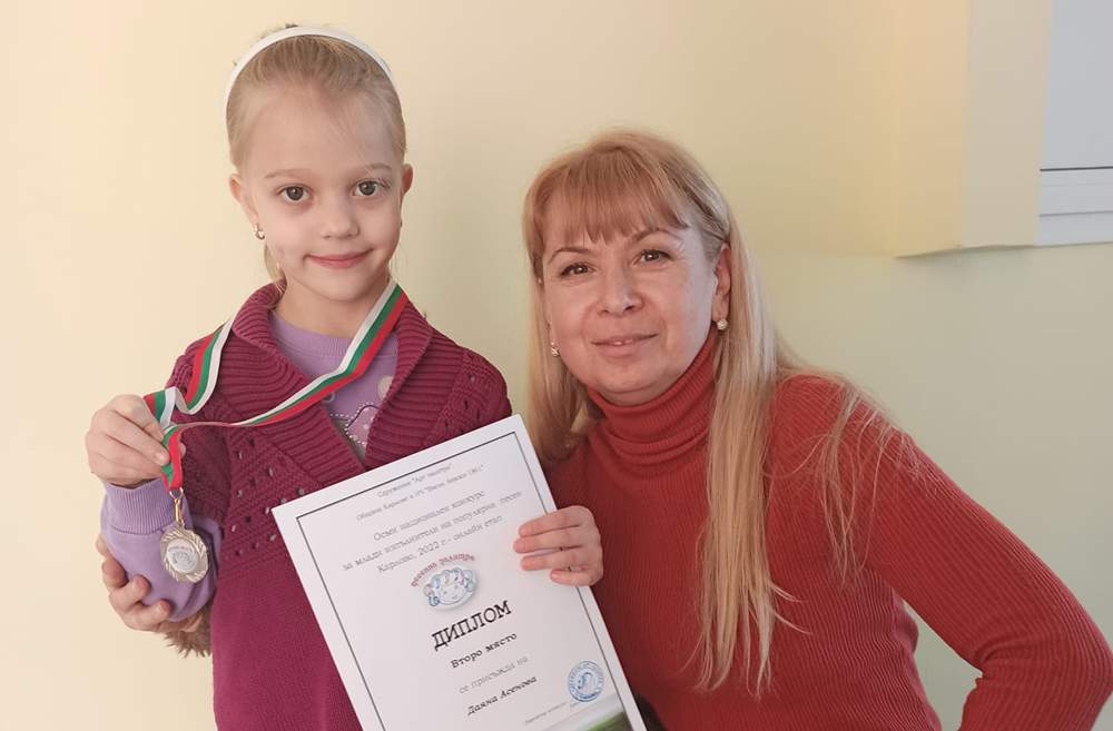 Даяна Асенова от Детска градина 15 „Слънце“ в Хасково спечели сребърен медал от Националния конкурс за изпълнител на популярна песен „Песенна палитра“, похвалиха се от градината.