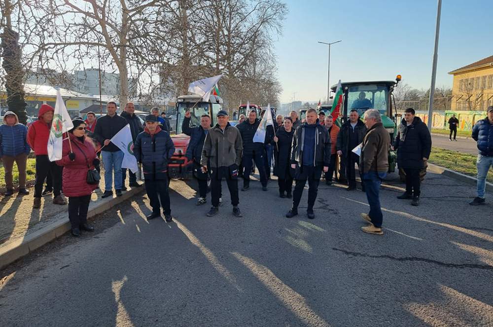 Лозари от региона протестираха в Харманли с искане за по-голяма държавна субсидия. Те бяха струпали селскостопанска техника на един от изходите на града.