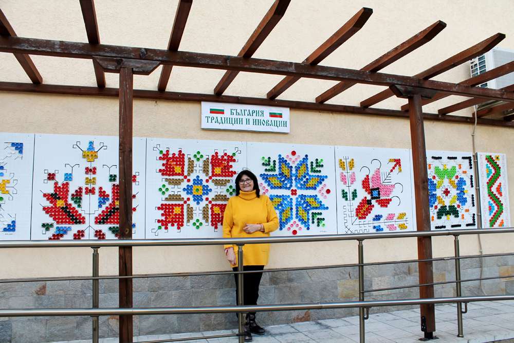 Изложбата беше подредена за Националния празник Трети март. 8 пана представят елементи от характерната за региона българска шевица в ярки цветове. Всеки бод на бродерията е изобразен от пластмасова капачка. Иновативните творби са изработени от Мария Кирова, която е ръководител на центъра, заедно с част от възрастните му потребители.