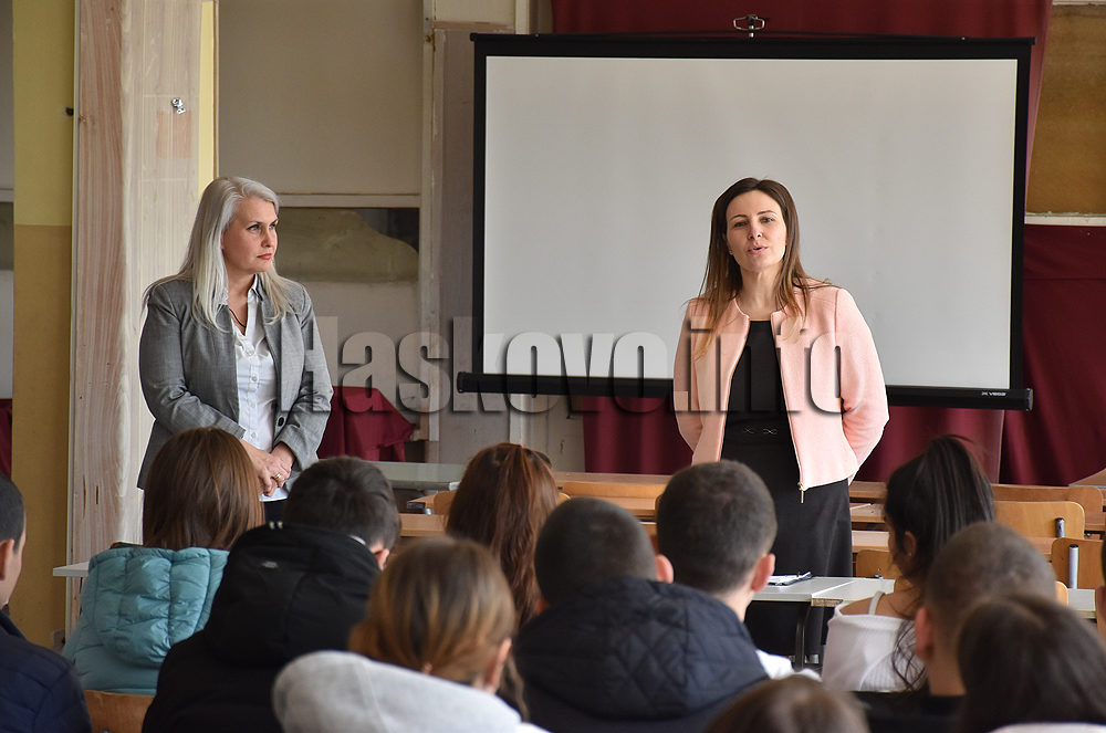 Открит урок пред гимназисти от 9 и 10 клас на хасковската ФСГ „Атанас Буров“ изнесоха Цветелина Стоянова – търговски мениджър в банков клон и Гергана Тонева – консултант на индивидуални клиенти.