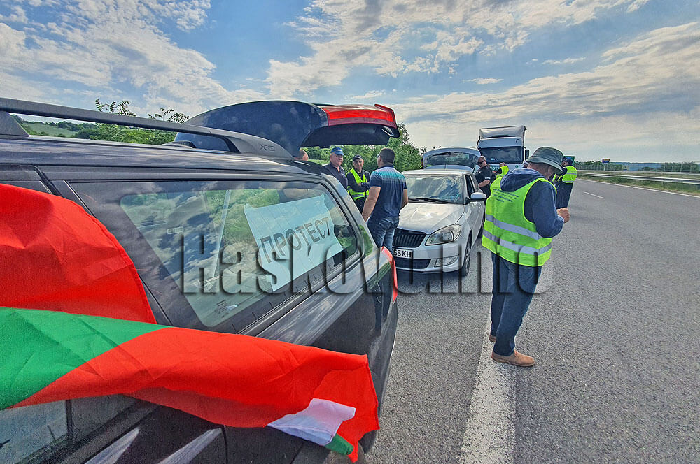 Десетки шофьори и камиони се събраха на автомагистрала „Марица“ малко след ГКПП „Капитан Андреево“ като част от националния протест на превозвачите.