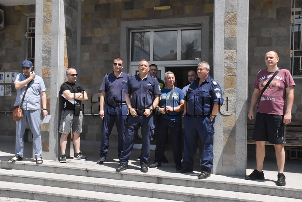 По време на обедната си почивка полицаи се събраха пред районното управление. Исканията им са за увеличение на заплатите с 25% и реформа в МВР. Председателят на хасковското дружество на Синдикалната федерация на служителите в МВР Владимир Даскалов заяви, че в момента в МВР не се правят никакви реформи, а се работи на парче. От пожарната не знаели дали ще излизат от МВР или не. Те довечера също ще протестират символично, съобщи Даскалов.