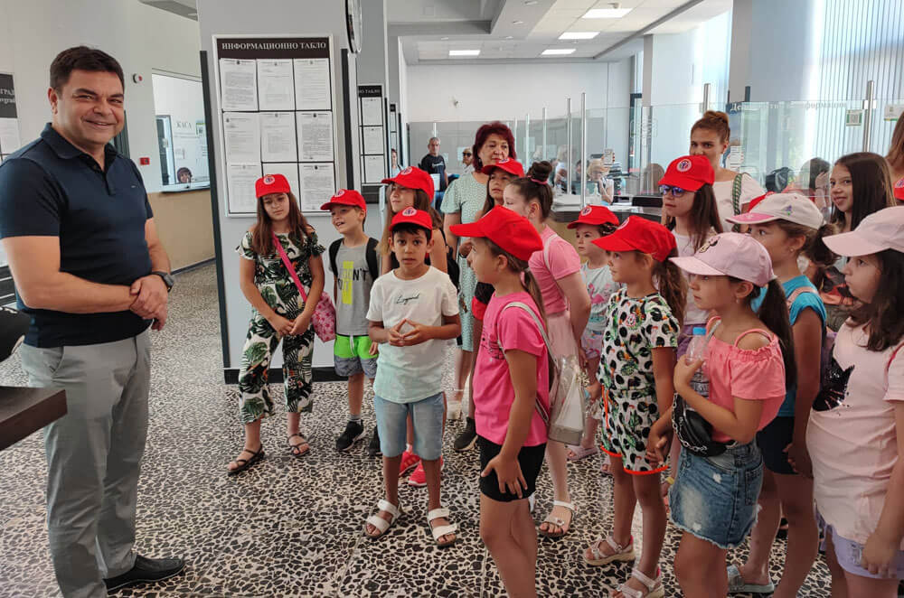 Децата бяха посрещнати от кмета Иво Димов, който им разказа за общината и показа различните зали и своя кабинет. Децата с любопитство разгледаха Заседателната зала, зала „Гросето“, както и Ритуалната зала, където се сключват гражданските бракове.