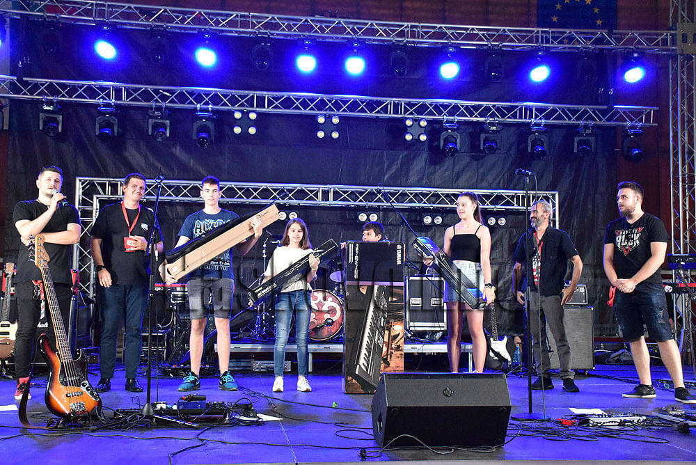 Талантливи млади музиканти бяха изненадани с нови инструменти и микрофони при официалното откриване на фестивала „Хасково рок“ в спортна зала „Дружба“.
