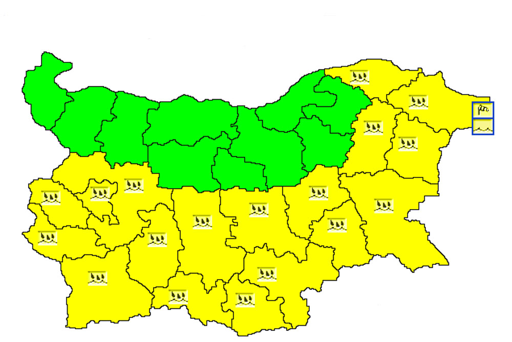Очакваните количества са между 20 и 35 литра на квадратен метър. Температурите ще са между 5 и 15 градуса. Предупреждението е в сила за 18 области на страната.