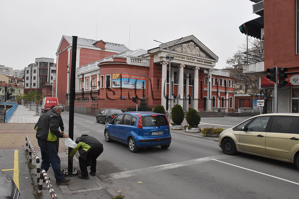 Поставиха стълб за временната секция на светофара до театъра, монтират я в събота