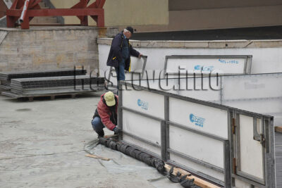 Работници на „Екопрогрес“ вече монтират ледената пързалка на площадка „Спартак“ в Хасково.