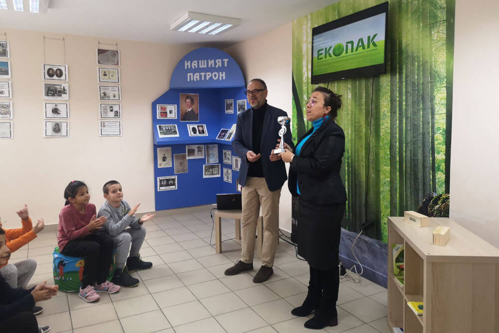 Специалното място за отдих е голямата награда на ЕКОПАК-България за разделно събиране и рециклиране на отпадъци. Емил Георгиев, представител на организацията, връчи на директора Антоанета Петрова купа и грамота за приноса на училището в съвместната инициатива с община Хасково.