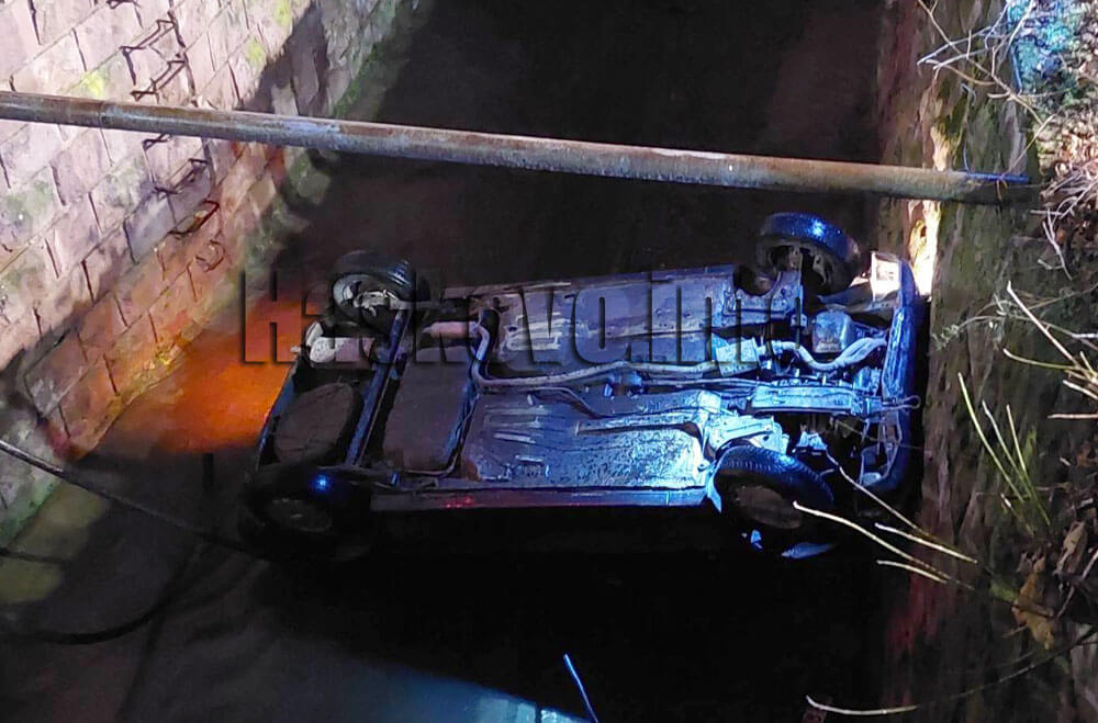 Лек автомобил падна тази вечер в коритото на реката на булевард „Илинден“ в Хасково.