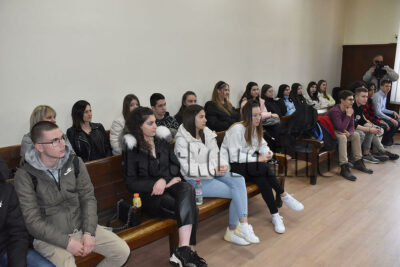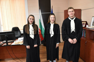 С работата на председателя Пламен Георгиев се запознаха гимназистите от паралелката „Съдебна администрация“. В тоги бяха Гергана Георгиева, Йоан Тонев и Виктория Хаджиева.