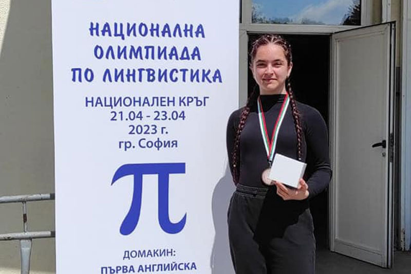 Талантливата ученичка спечели бронзов медал във възрастовата група 9 клас. Състезанието се проведе в Първа английска езикова гимназия в София.