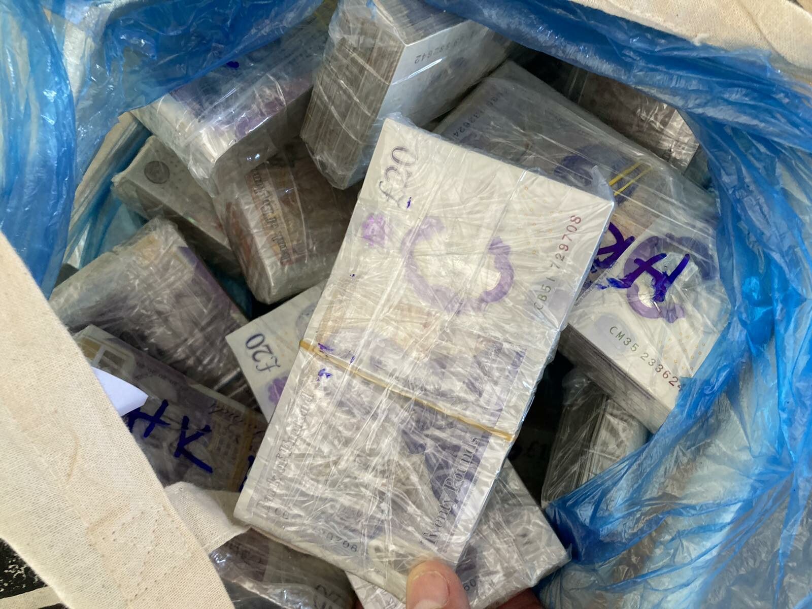 Товарният автомобил е селектиран за щателна митническа проверка, при която във фабрични кухини в шофьорската кабина и под пасажерската седалка са открити банкноти с британски паунди и евро, увити в прозрачно тиксо.
