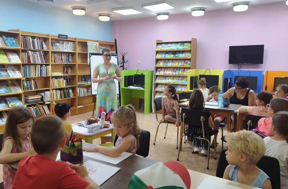 Художничката Таня Атанасова научи децата на нови техники за рисуване в инициативата „Лято в библиотеката“ в Хасково.