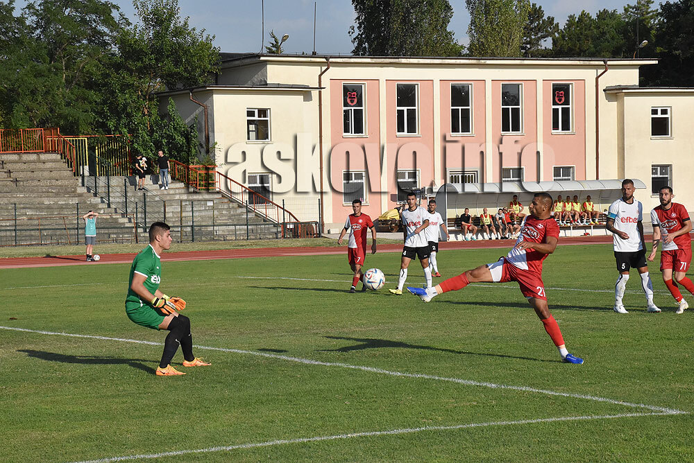 В началото на първото полувреме гостите останаха с човек по-малко. Хасковлии пропуснаха няколко изгодни положение, но до гол така и не се стигна.