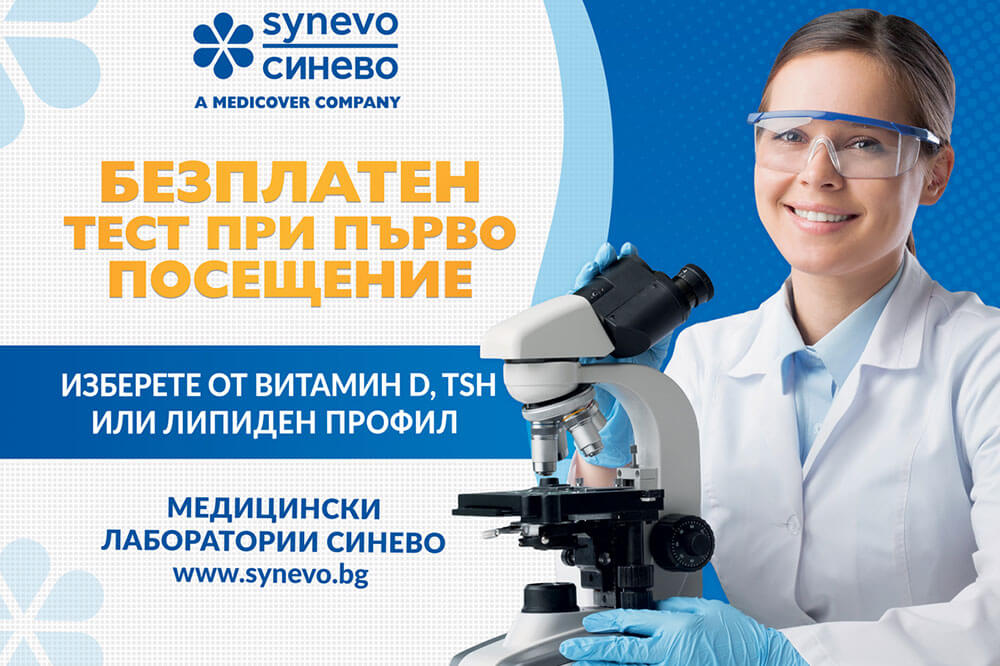 Безплатен тест при първо посещение в Медицинска лаборатория Синево