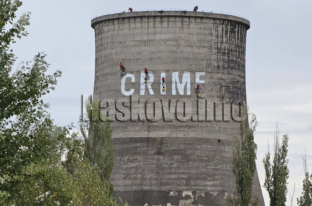Както Haskovo.info писа, рано сутринта екоактивисти на „Грийнпийс“ се качиха на кулата и започнаха да изписват „CRIME“ на нея. Протестната акция е срещу замърсяването на въздуха в града. Участниците са от България, Полша, Чехия, Унгария, Австрия, Хърватия, Гърция и Румъния.